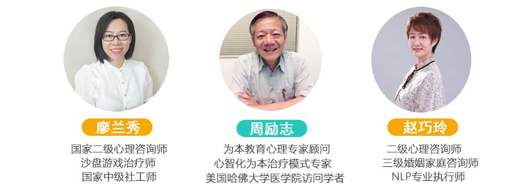 周鈺清為本教研專(zhuān)家導(dǎo)師國(guó)家二級(jí)心理咨詢(xún)師美國(guó)NGH催眠治療師中國(guó)心理健康委員會(huì)理事廣東省心理咨詢(xún)師協(xié)會(huì)理事個(gè)人簡(jiǎn)介為幼兒園、小學(xué)、初中、高中等不同年齡段家長(zhǎng)舉辦親子溝通講座及沙龍,加強(qiáng)家、校互動(dòng),結(jié)合家長(zhǎng)、學(xué)校共同為孩子的心理成長(zhǎng)獲取更適合的方法;對(duì)特殊兒童、問(wèn)題兒童開(kāi)展個(gè)體、團(tuán)體心理輔導(dǎo);設(shè)計(jì)不同年齡段兒童社交能力、學(xué)習(xí)能力、增強(qiáng)